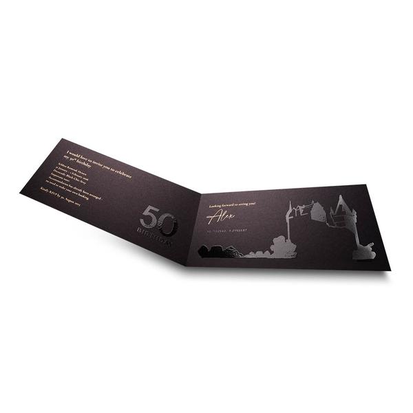 Die Brief-Klappkarte mit Logo und Briefhülle ist ein exklusives und stilvolles Produkt für Agenturen wie INMEDIA. Die elegante Klappkarte dient als Einladung zu einem 50. Jubiläum. Sie besticht durch eine goldene Heißfolienprägung und glänzenden Relieflack, was ihr eine luxuriöse Haptik verleiht. Im Inneren befindet sich der Einladungstext. Die Karte wird mit einem passenden schwarzen Briefumschlag geliefert. Diese hochwertige Karte hilft INMEDIA, ihre Markenbotschaft professionell und kompetent zu kommunizieren. Ihre durchdachte Funktionalität und das ansprechende Design spiegeln den Qualitätsanspruch und die Seriosität des Unternehmens wider. Sie ermöglicht eine effiziente und repräsentative Übergabe von Informationen an Kunden und Partner und stärkt so die Kundenbindung in der Kommunikationsbranche.