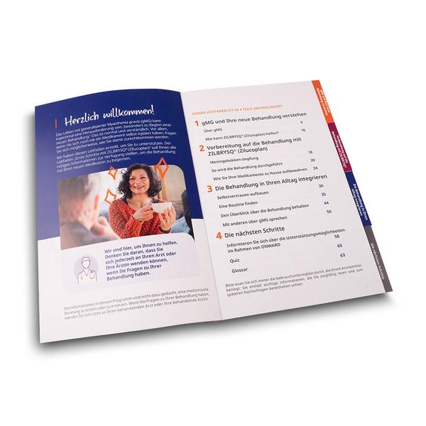 Die Broschüre ZILBRYSQ ist ein professionelles und vielseitiges Produkt für Unternehmen wie Argenx. Diese Broschüre mit Registerstanzung wurde individuell bedruckt und hat vier Registerfächer mit beschrifteten und farbig bedruckten Taben, was eine geordnete Präsentation ermöglicht. Sie heißt ihre Leser herzlich willkommen und enthält neben einem Inhaltsverzeichnis auch viele Bilder und informative Texte zu den verschiedenen Themen, was sie zu einem idealen Werbeträger macht. Diese hochwertige Broschüre hilft Argenx, ihre Markenbotschaft professionell und kompetent zu kommunizieren. Ihre durchdachte Funktionalität und das ansprechende Design spiegeln den Qualitätsanspruch und die Seriosität des Unternehmens wider. Sie ermöglicht eine effiziente und repräsentative Übergabe von Informationen an Kunden und Partner und stärkt so die Kundenbindung im Pharma- und Medizinbereich.