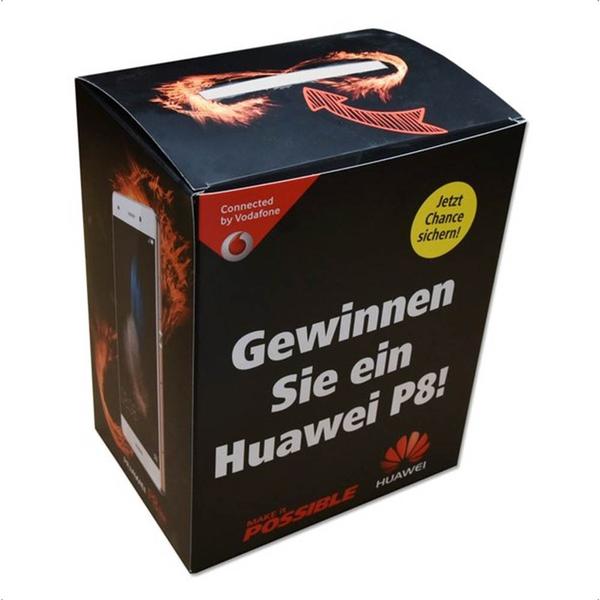 Diese Gewinnspielbox für Vodafone ist mit einem einfachen Stecksystem aufzubauen. Sie enthält einen Schlitz auf dem Deckel zum Einwerfen. Zusätzlich dient die Box noch als Werbeträger und Eyecatcher durch ein auffälliges Design. Es ist egal welche Größe/welches Format Sie benötigen, wir stellen viele verschiedene Varianten her! Individuell bedruckt