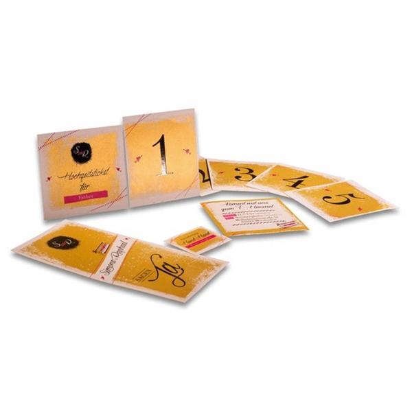 Sie sind hochwertig veredelt mit einer Kombination aus Glanz- und Relieflack. Um auf dem durchgefärbten Karton ein optimales Druckbild und den gewünschten Rand zu erhalten, ist Deckweiß aufgedruckt worden.