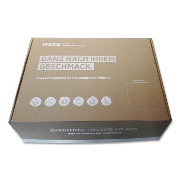 In der dynamischen Welt der Personaldienstleistung setzt der Branchenführer Hays auf Authentizität und Professionalität, um hochqualifizierte Experten und Unternehmen passgenau zusammenzuführen. Diese fachliche Kompetenz wird durch unsere Kiste aus Braunpappe mit Deckweiß bedruckt haptisch untermalt, die als nachhaltige und gleichzeitig edle Versandlösung für wichtige Unterlagen oder exklusive Präsente dient. Wir fertigen diese individuelle Verpackung im Direktdruck, wobei die weiße Farbe auf dem natürlichen Material eine beeindruckende Plastizität erzeugt und den modernen Umweltlook perfekt mit einem hochwertigen Markenauftritt kombiniert. Als Hersteller unterstützen wir Hays dabei, durch diese maßgeschneiderte Drucksache einen bleibenden Eindruck bei Fachkräften zu hinterlassen und die Wertigkeit ihrer Vermittlungsleistung zu unterstreichen. Die robuste Konstruktion der Kiste schützt den Inhalt zuverlässig, während das kontrastreiche Design die innovative Kraft des Unternehmens widerspiegelt. Mit dieser besonderen Drucktechnik schaffen wir eine einzigartige Markenbotschaft, die den professionellen Anspruch in der Rekrutierungswelt greifbar macht und die Bindung zu Kunden sowie Kandidaten nachhaltig festigt.