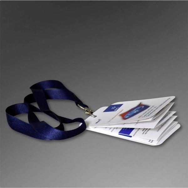 Auf dem Messe- und Veranstaltungsplaner können auf kleiner Fläche viele Informationen und Termine untergebracht werden. Mit diesem Minifaltplaner an einem Umhängeband (Lanyard) befestigt, werden die Teilnehmer zu einer eindeutig erkennbaren Gruppe. Auch das Ordnungspersonal weiß jetzt, wer wohin gehört.