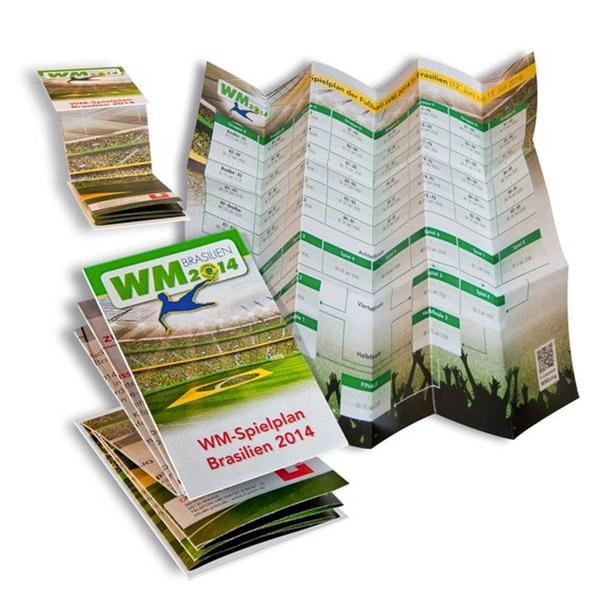 Dieser Mini-Faltplaner zeigt Ihnen schnell und übersichtlich alle Spiele rund um ein bestimmtes Sport-Turnier, z.B. Fußball-WM oder EM. Sie tragen Ihre aktuellen Spielergebnisse ein, sind immer up to date. Dank Sckeckkartengröße passt der Mini-Faltplaner in jedes Portemonnaie. Auf der Rückseite haben Sie genügend Platz für individuelle Botschaften.