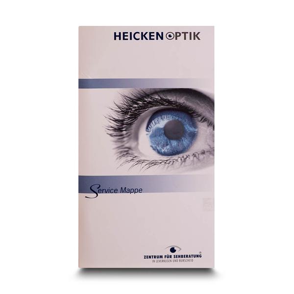 Die Service Mappe ist ein professionelles und vielseitiges Produkt für Optiker wie Heicken Optik. Die Mappe ist auf der Vorderseite mit dem Firmennamen und dem Titel "Service Mappe" bedruckt. Ein Augenmotiv wurde ebenfalls abgebildet. Innen sind auf der linken Seite die Serviceleistungen und Produkte aufgelistet, während auf der rechten Seite zwei gesteckte Laschen für die Ablage von Dokumenten sorgen. Die Mappe hat eine Li-Brillantlack matt Veredelung. Diese hochwertige Mappe hilft Heicken Optik, die Markenbotschaft professionell und kompetent zu kommunizieren. Ihre durchdachte Funktionalität und das ansprechende Design spiegeln den Qualitätsanspruch und die Seriosität des Unternehmens wider. Sie ermöglicht eine effiziente und repräsentative Übergabe von Informationen an Kunden und Partner und stärkt so die Kundenbindung im Optikbereich.
