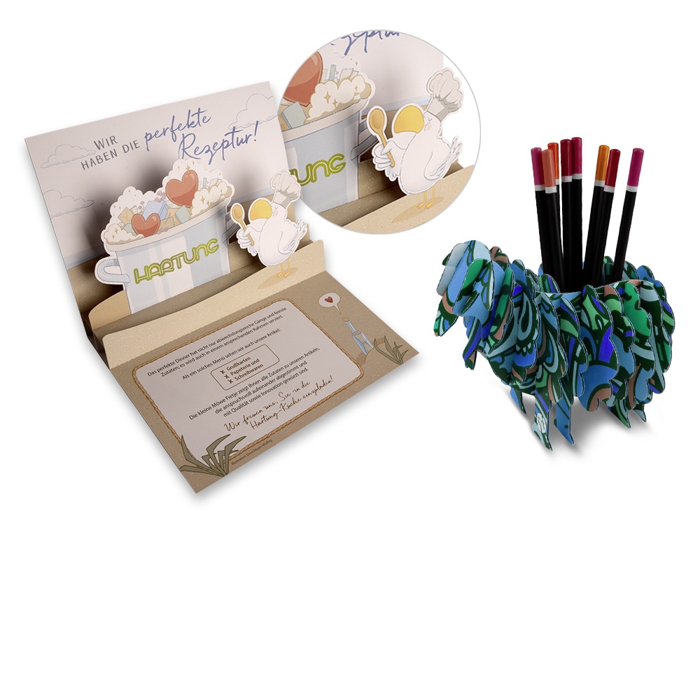 Entdecken Sie vielfältige Vorlagen in unserr Ideenschmiede - oder entwickeln Sie gemeinsam mit uns Ihr maßgeschneidertes Druckprodukt.